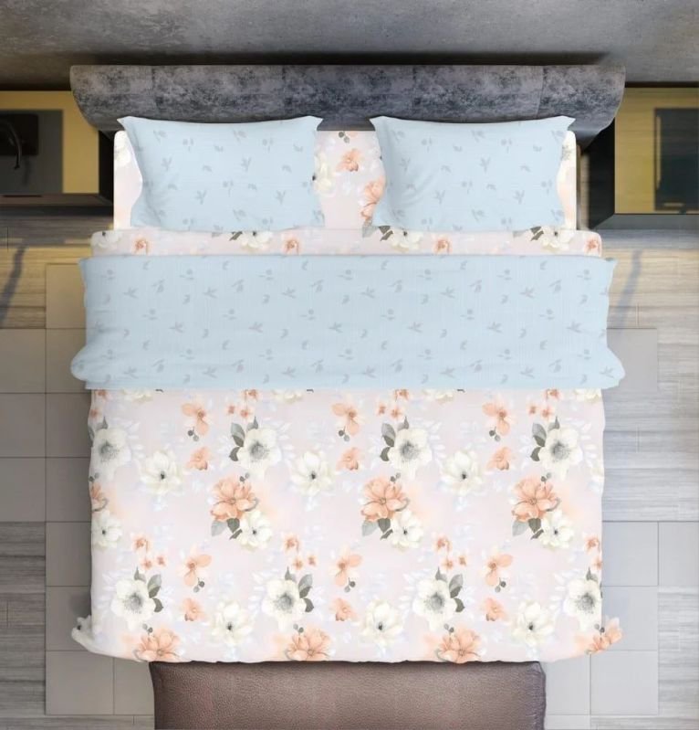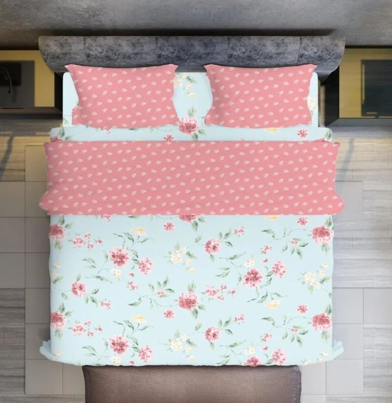 Glace Cotton Double Size Printed Bed Sheet Set with Pillow Covers