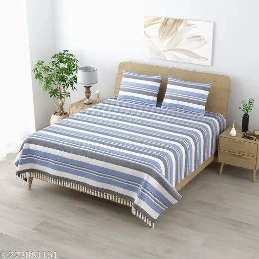 Home › Products › Polycotton Bed Sheets & Set › Pure Cotton Handloom Stripe Print Bed Sheet Set